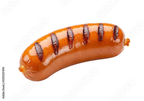 Close up of a grilled sausage with visible grill marks on its surface against a plain backdrop on transparent background