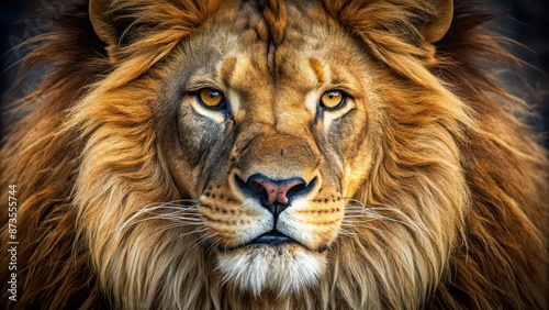 Close up of a majestic lion with intense eyes and sharp teeth , wildlife, predator, feline, carnivore, mane, animal