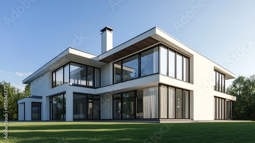 Close Up of a Modern Home with Spacious Lawn and Large Windows
