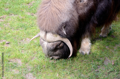 Close up of a musk ox grazing