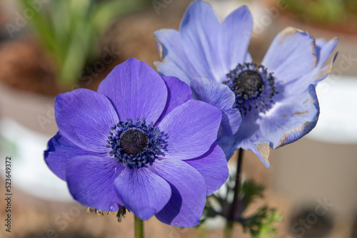 flower, anemone, flower head, single flower, bloom, blooming, in bloom, beauty, beautiful, flora, floral, close, closeup, closeup, nature, natural, garden, gardening, macro, photo, botany, botanical, horticulture, horticultural, ornamental, outdoors, outside, day, colours, colours, color image, horizontal, purple, purple flower, spring, springtime, springtime, pollen, fresh, freshness, growth