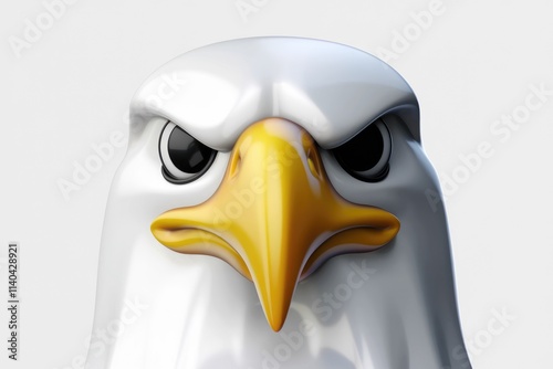Close up of a stylized bald eagle's head rendered in 3D showing intense gaze.