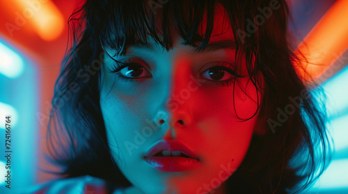 Close up of a womans pink lips and tearfilled eyes with flash photography