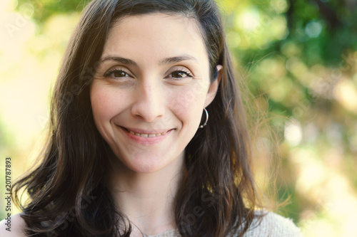 Close up of a young woman outdoors.