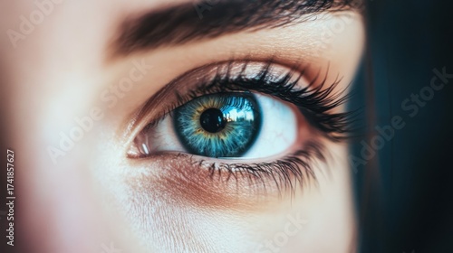 Close Up of Beautiful Human Eye with Vibrant Blue Iris and Details