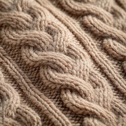 Close up of beige cable knit wool sweater texture soft warm and cozy winter fashion apparel design