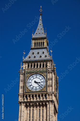 close up of Big Ben Clock Tower Against Blue Sky England United Kingdom