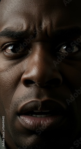 black, man, scared, panicked, fear, expression, close, closeup, face, zoomed, zoom, portrait
