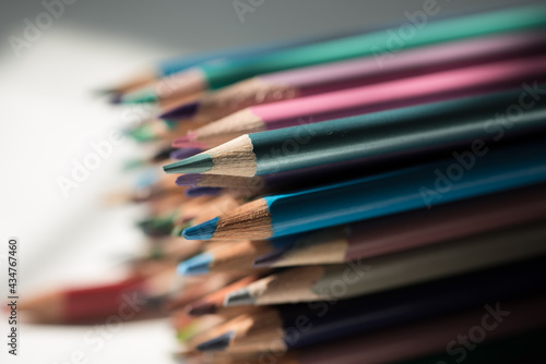 close up of colored pencils - diagonal or side view