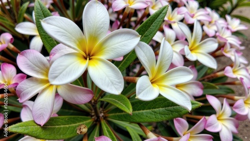 plumeria, frangipani, flower, floral, tropical, bloom, blossom, fragrant, white, pink, yellow, green, leaf, nature, botanical, garden, flora, exotic, summer, spring, beauty, delicate, fragrance, plant, hawaii, bali, organic, closeup, detail