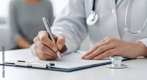 Close Up of Doctor Writing on Clipboard During Consultation