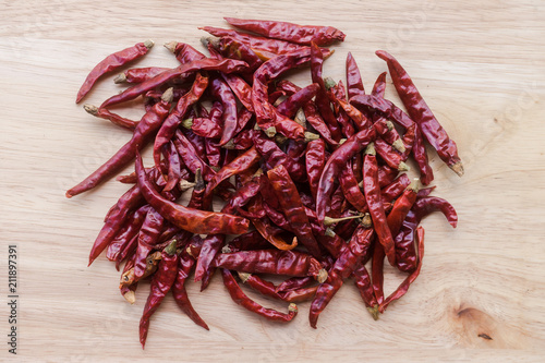 close up of dry chili on wooden background