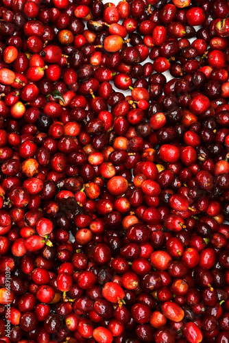 agriculture, arabica, background, bean, berry, beverage, caffeine, cherry, closeup, hot drink, cultivate, food, fresh, grain, growth, harvest, industry, ingredient, nature, organic, plant, raw, red, ripe, robusta, seed, stimulant, thai, siam, unripe
