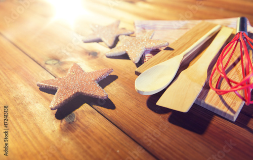close up of gingerbread and baking kitchenware set
