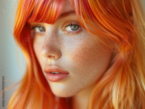 hair, coiffure, styled, closeup, redhead, red, style, stylish, dynamic, beautiful, fashion, glamour, woman, beauty, face, lip
