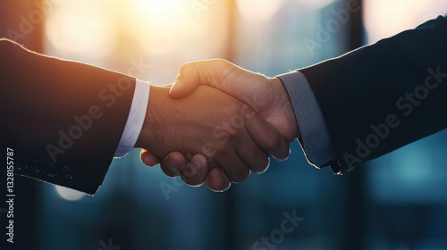 close up of handshake symbolizing partnership and agreement in business setting. warm light creates positive atmosphere
