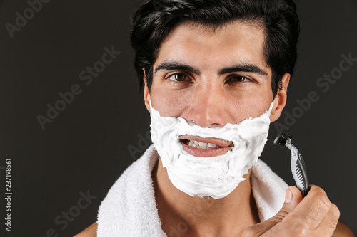 caucasian, towel, hygiene, shaving, morning, person, background, razor, adult, male, treatment, photogenic, isolated, shirtless, shaver, man, portrait, muscular, beauty, foam, naked, stubble field, beautiful, bathroom, attractive, beard, individual, cream, charming, grooming, looking, care, young, skin, gel, hair, routine, grey, indoor, human, shave, smooth, hand, closeup, procedure