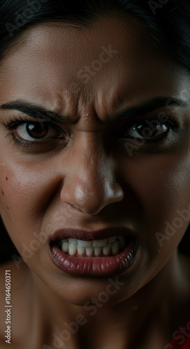 Close up of Indian Woman face, Angry Upset Mad Expression, Zoom In, Zoomed Portrait