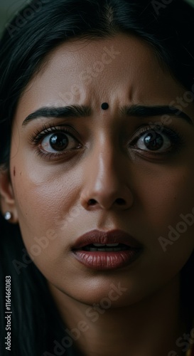Close up of Indian Woman face, Scared in Fear and Terror Expression, Zoom In, Zoomed Portrait