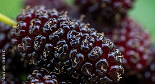 Close up of Juicy Dark Mulberries Fresh Fruit Berry Healthy Food Nature Agriculture Food