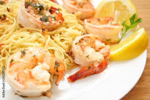 Close Up of Jumbo Tiger Shrimp Scampi & Pasta