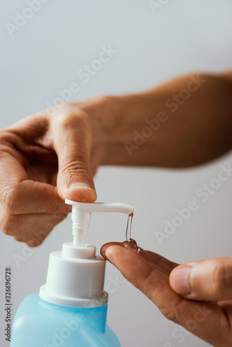 hand, washing, man, adult, liquid, alcohol, disinfectant, antiseptic, disinfection, sanitizing, prevention, preventive, protection, infection, infectious, disease, disease, transmission, transmitted, virus, microorganism, germ, health care, health, care, clean, cleaner, hygiene, hygienic, dispenser, medicals, widener, epidemic, people, indoor, blue, studio, 1, alone, closeup, obscured