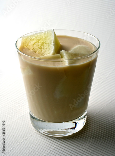 Close up of milk punch served on table