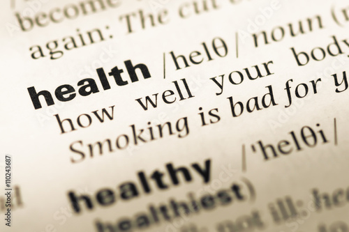 Close up of old English dictionary page with word health
