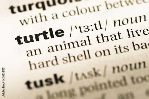 Close up of old English dictionary page with word turtle