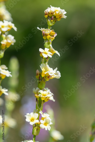 Close up of pale yellow eyed grass (sisyrinchium striatum) flowers in bloom