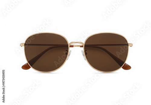 sunglasses, round, brown, lense, gold, metal, frame, isolated, eyewear, fashion, accessory, style, closeup, optical, protection, summer, sun, vintage, retro, elegant, modern, stylish, design, classic, trend, object, view, clear, shiny, eye