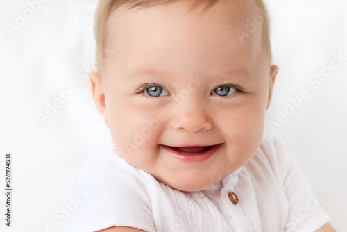 baby, girl, face, blue eye, blue, eye, smile, grin, happy, laughing, joy, white, children, mouth, nose, lip, open mouth, childhood, caucasian, mixed race, closeup, beautiful, cute, adorable, innocence, pure, healthy, copy space, alone, little, young, 1, bright, portrait, indoor, look, eye, pupil, iris, infant, lash, looking away, smiling, happiness, laughter, closeup