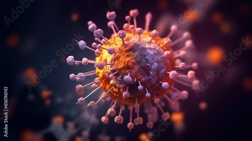 Close up of the COVID virus floating on a dark background. Created with Generative Ai technology.
