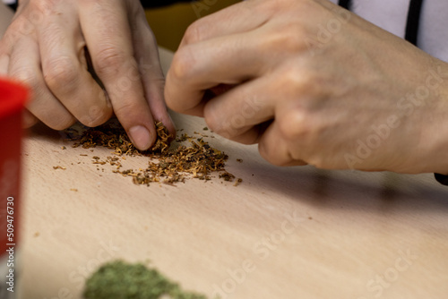 closeup, hand, mixing, hashish, tobacco, making, joint, ganja, ganja, check-up, apothecary, relaxing, medicals, medicine, person, abuse, indoor, privacy, alternative, illegal, dope, finger, disease, addict, drug, cannabis, smoke, unhealthy, filter, natural, organic, copy space, healthy lifestyle, preparation