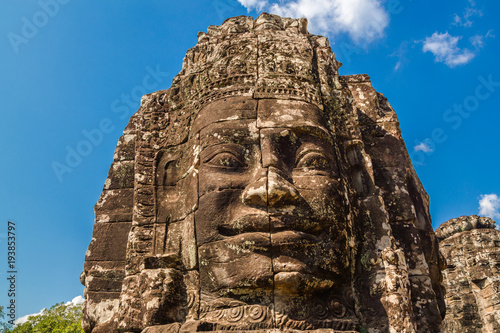 Close up of the stone Buddah faces in the Bayon Temple at Angkor Complex, Siem Reap, Cambodia