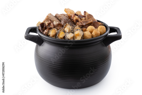 chinese, new, year, food, lunar, meal, soup, steamed, broth, isolated, white, background, casserole, black, table, cookery, epicure, tradition, traditional, closeup, closeup, seafood, assorted, meat, rich, luxurious, abalone, sea, cucumber, pork meat, taro, fried, egg, pig, pot, asian, taiwanese, china, dish, cookery, festival, copy space, design, eatery, culture