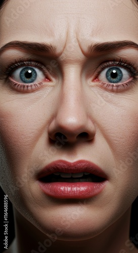 Close up of Woman face, Scared and in Fear, Terror Expression, Zoom In, Zoomed Portrait
