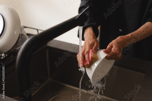 plate, woman, home, clean, hygiene, sponge, housekeeping, dish, fresh, plate, tap, girl, people, food, routine, morning, standing, casual attire, crockery, bowl, dirty, work, wet, closeup, chore, lifestyle, liquid, detergent, washer, helper, house, household, apartment, foam, domestic, homemaker, sink, laundered, water, dish, soap, hand, faucet, chore, female, housework, cleaner, person, kitchen