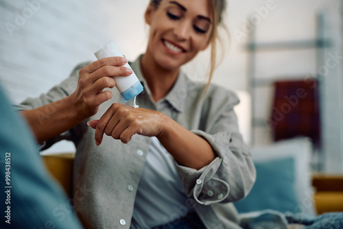 hand cream, woman, skin, care, hydratation, moisturiser, routine, avocation, adult, apply, bodycare, closeup, dermatology, happy, home, human, indoor, lifestyle, living room, people, white, young