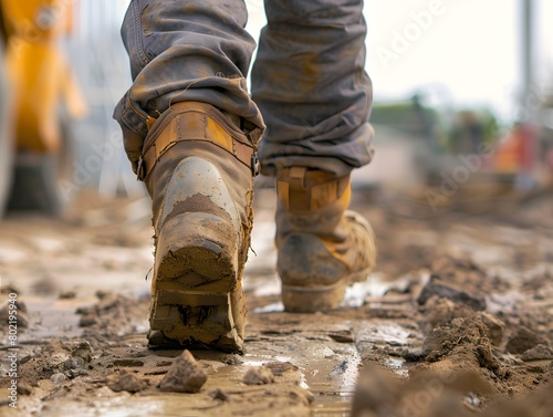 Close up of worker walking on construction area
