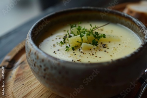 soup, potato, leek, cream, vegetable, creamy, milk, classic, food, kitchen, white, green, leaf, cooking, cheese, healthy, modern, dinner, meal, cookery, epicure, lunch, dish, herb, pepper, spice, onion, spoon, taste, seed, garnish, bowl, utensil, broth, contemporary, chives, close, closeup, cook, delicious, dining, eat, fresh, hot, tasty, vegetarian, warm