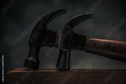 set, collection, hammer, mallet, carpenter's shop, carpenter, wood, woodwork, working, workbench, rust-eaten, tool, vintage, craftsmanship, handiwork, handcraft, concept, timbering, industry, timber, bricolage, do it yourself, dark, texture, background, furniture
