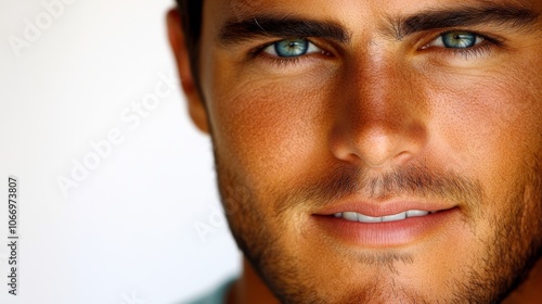 Close up Portrait Handsome Man Blue Eyes Tan Skin