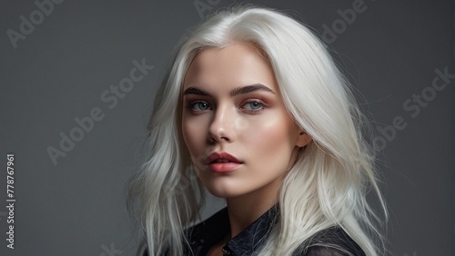 Close up portrait of a beautiful woman with long blond hair on a black background
