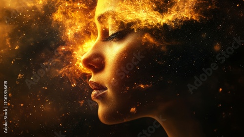 fire, flames, woman, face, portrait, closeup, beauty, mystical, magical, power, energy, passion, strength, fiery, hot, intense, dramatic, artistic, abstract, fantasy, surreal, glowing, bright, light, dark, smoke, spark, ember, heat, danger, aethereal, mysterious, supernatural, feminine, female, bold, fearless, goddess, magic, spirit, visionary, willpower, motivation, inspiration, imagination, creative, transformation, rebirth