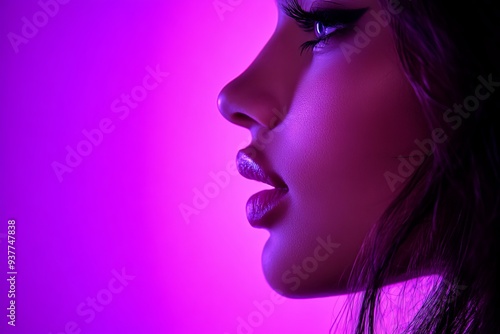 Close up portrait of a young woman in a vibrant neon lit digital environment symbolizing the fusion of modern fashion and advanced virtual reality technology in a futuristic world