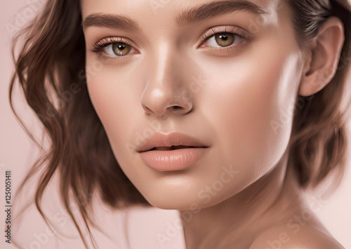 Close up Portrait of a Young Woman with Beautiful Skin and Brown Hair