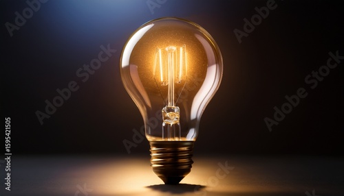 close up shot of a glowing lightbulb illuminating a dark background sparking creativity and innovation invention progress