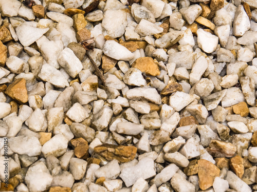 Close up view Background of white pebbles, and light brown, wet after summer rain