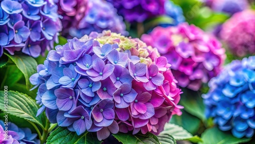 Close up view of beautiful Hydrangea variety Aisha flowers in bloom, Hydrangea, Aisha, variety, flowers, close up, bloom, pink